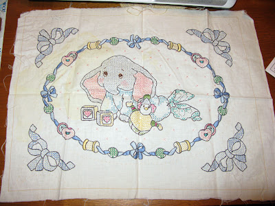 This is a cross stitch project I started in, oh, 1986? Somewhere’s around there! Anyway, I’ve accepted that I’m never going to finish it and it’s in the bin for the Goodwill! It might make cute pillows for some baby. Not mine! Heh. Anyway, this is what the quilt was supposed to be made of…