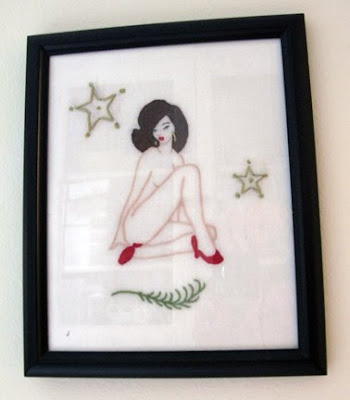 This naked lady hangs in my pantry, which also serves as our bar. I’m particularly proud of her hair. It was a lot of work and I filled it with a mix of browns that makes it look like highlighted hair.
