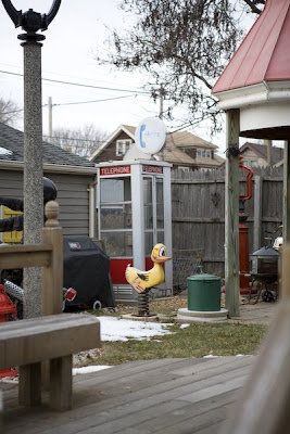Even farther back in the yard…a telephone booth, a playground duckie, and more…