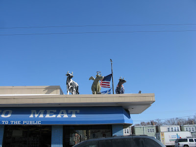 Strange painted cows sitting atop a meat market in Chicago. I like the “angel” cow best!